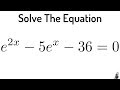 #46. Solve the Exponential Equation e^(2x) - 5e^x - 36 = 0 (Exponential Equation in Quadratic Form)#46. Solve the Exponential Equation e^(2x) - 5e^x - 36 = 0 (Exponential Equation in Quadratic Form) | |